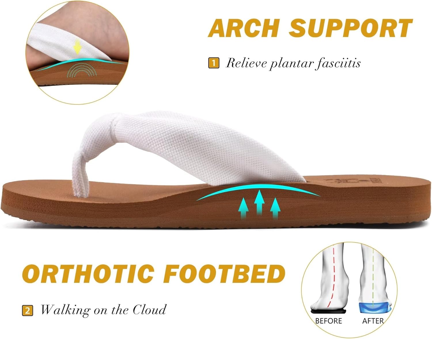 Introducing our Women's Flip Flops with Arch Support, the perfect combination of style and comfort for all your summer activities. Made with a yoga mat cushioned footbed, these flip flops provide unparalleled support for your arches, ensuring all-day comfort whether you're at the beach, walking around town, or lounging indoors.