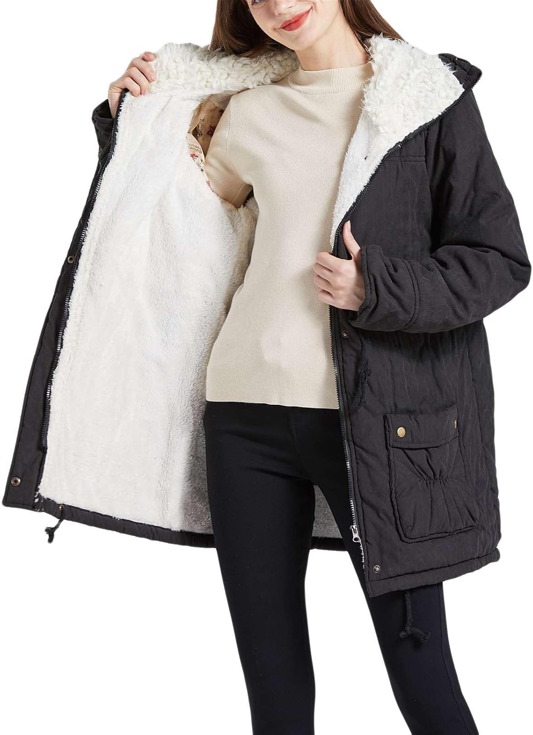 Stay cozy and stylish this winter season with our Women's Winter Mid Length Thick Warm Faux Lamb Wool Lined Jacket Coat. Made from high-quality materials, this coat features a faux lamb wool lining that will keep you warm and comfortable on even the coldest days. The mid-length design offers added protection from the elements, while the thick construction provides extra insulation. Perfect for everyday wear or special occasions, this jacket is a must-have addition to your winter wardrobe. Order yours today and stay warm in style!